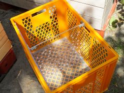 - Eine der langen Seiten der Bäckerkiste heraussägen.