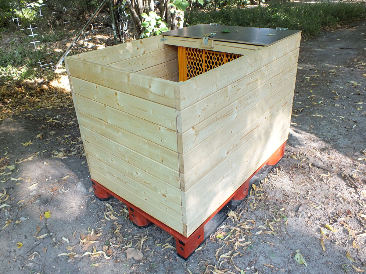 Schritt 9: Das Hochbeet mit der integrierten Wurmkiste auf eine Europalette stellen.