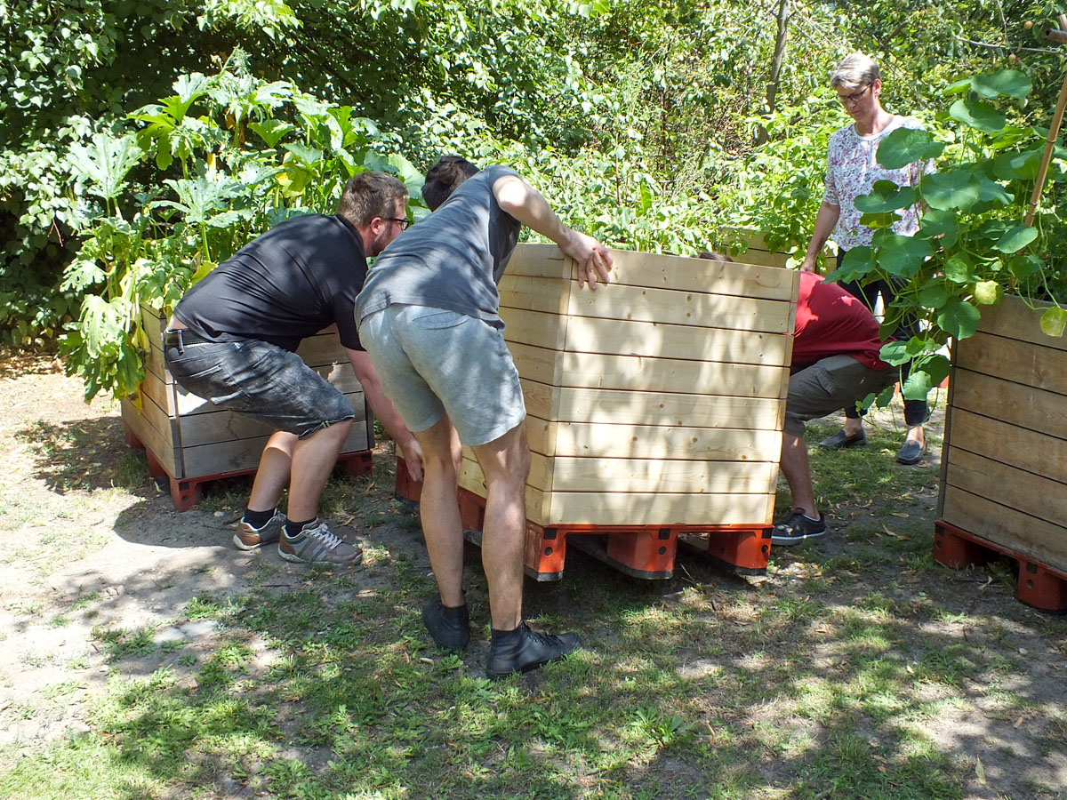 - Das fertige Hochbeet zum einfacheren Transport auf eine Europalette stellen.