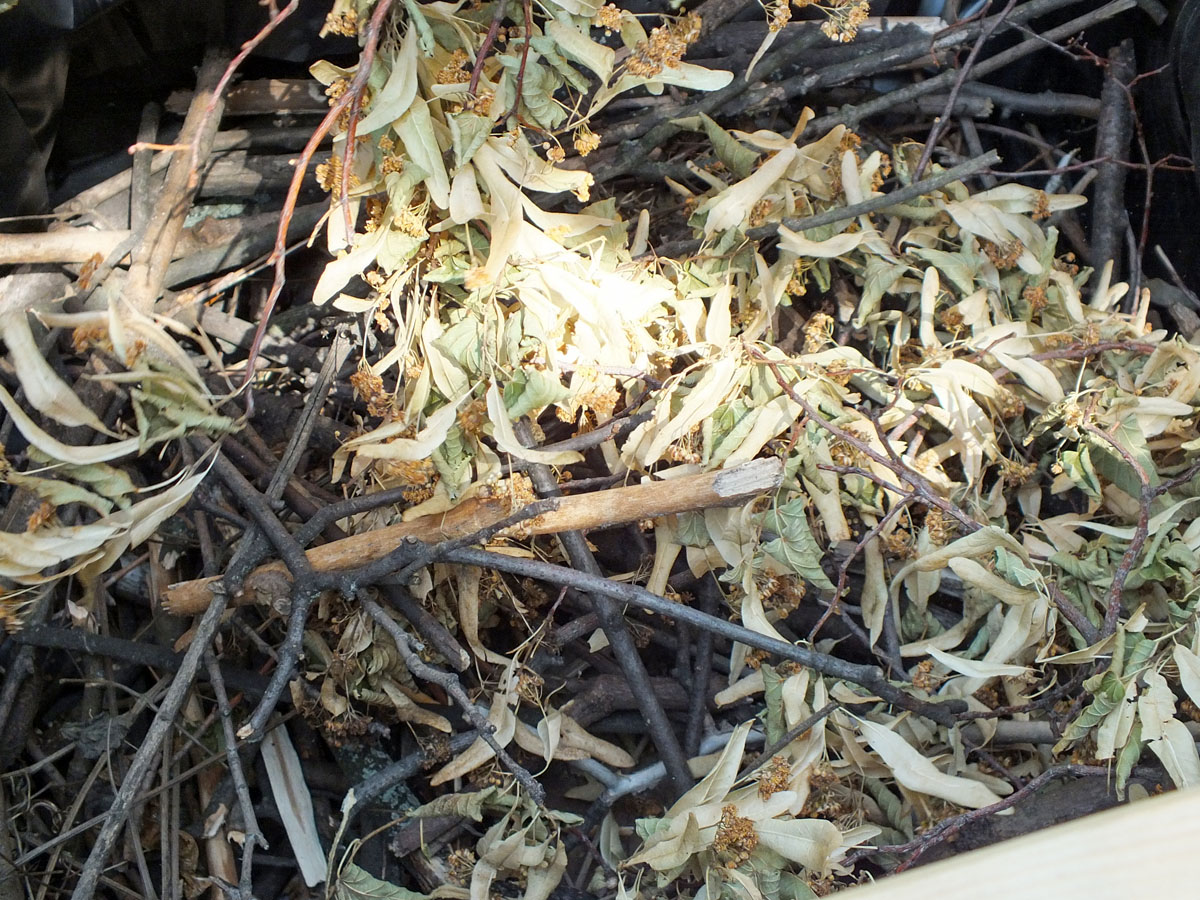 Schicht 1: Dicke Äste oder Stammholz sowie Äste und Zweige