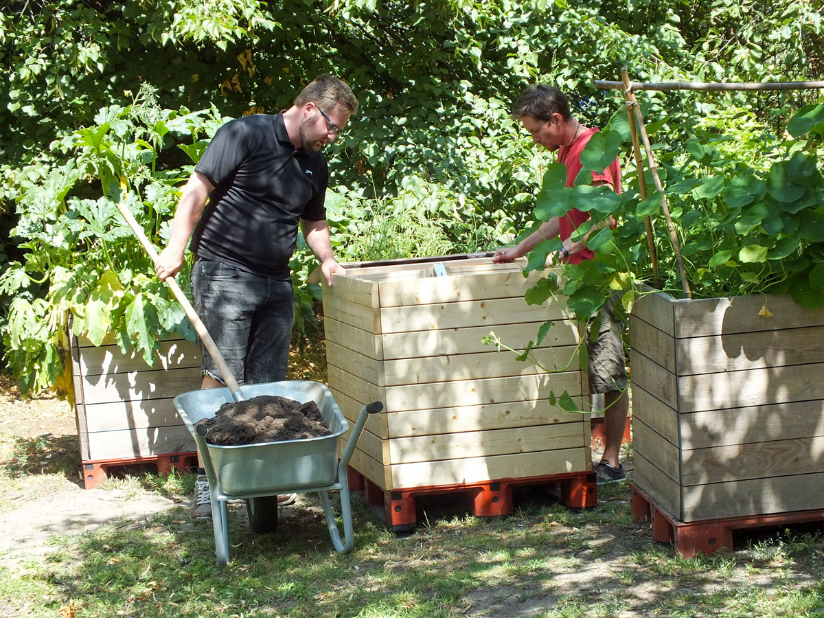 - Reifer Kompost (Lagerdauer ca. 6-12 Monate, feinkrümelig, Geruch nach Walderde) kann zur Befüllung der Hochbeete verwendet werden.