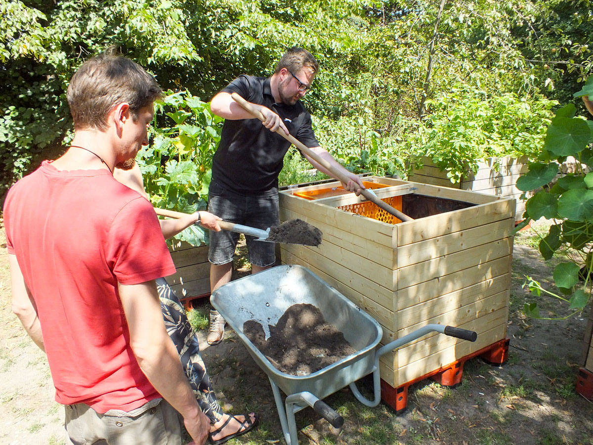 Fertig ist das innerstädtische Refugium für Würmer sowie nachhaltig angebautes Gemüse und Obst, in dem organischer Abfall in Humus umgewandelt und ein Kreislauf zwischen Mensch und Natur erfolgt.