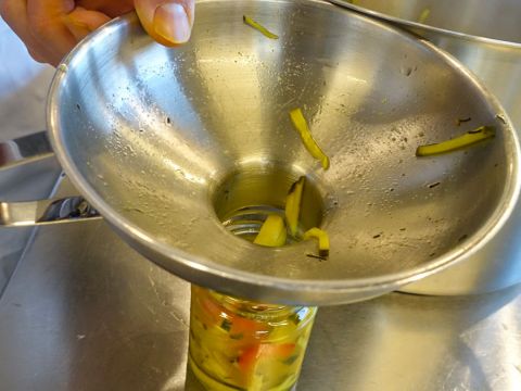 - Die heiße Masse randvoll in gesäuberte, heiß ausgespülte Schraubgläser füllen.