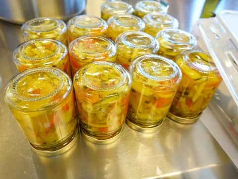 - Aus gesundheitlicher Perspektive der Deutschen Gesellschaft für Ernährung (DGE) enthalten die süß-sauer eingelegten Zucchini zu viel Zucker, zu wenig Ballaststoffe und etwas zu viel Salz. Das süß-sauer eingelegte Gemüse eignet sich gut zum Verfeinern von bspw. Salat oder Brot und sollte nicht in großen Mengen auf einmal verzehrt werden. Am besten werden ballaststoffreiche Lebensmittel, z. B. Vollkornbrot oder Linsenbratlinge dazu kombiniert.