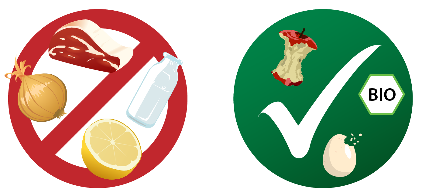 - hauptsächlich Reste von Gemüse und Obst (in Bio-Qualität),